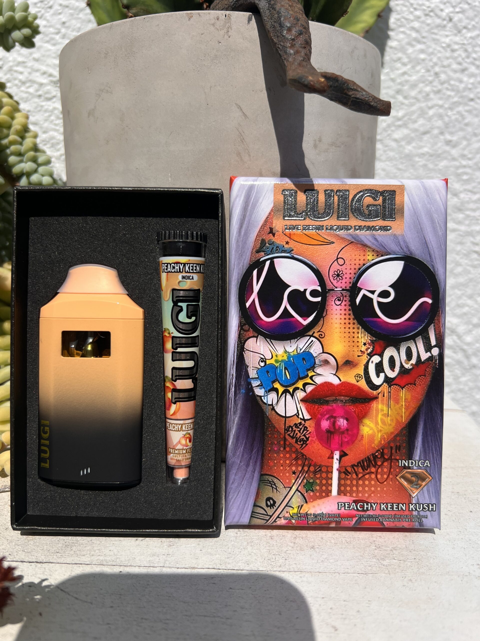 LUIGI – Disposable – Peachy Keen Kush – Indica – (Live Resin Liquid Diamonds) 2G+Pre-Roll – 2 for $85