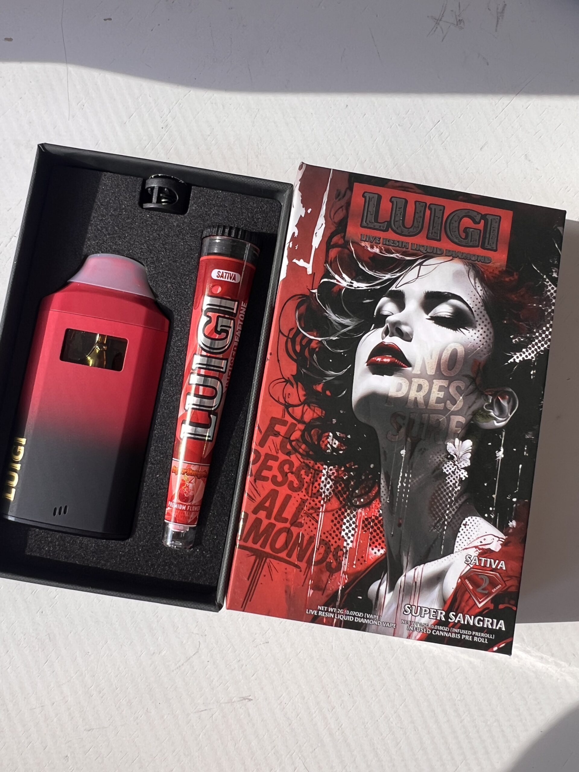 LUIGI – Disposable – Super Sangria – Sativa – (Live Resin Liquid Diamonds) 2G+Pre-Roll