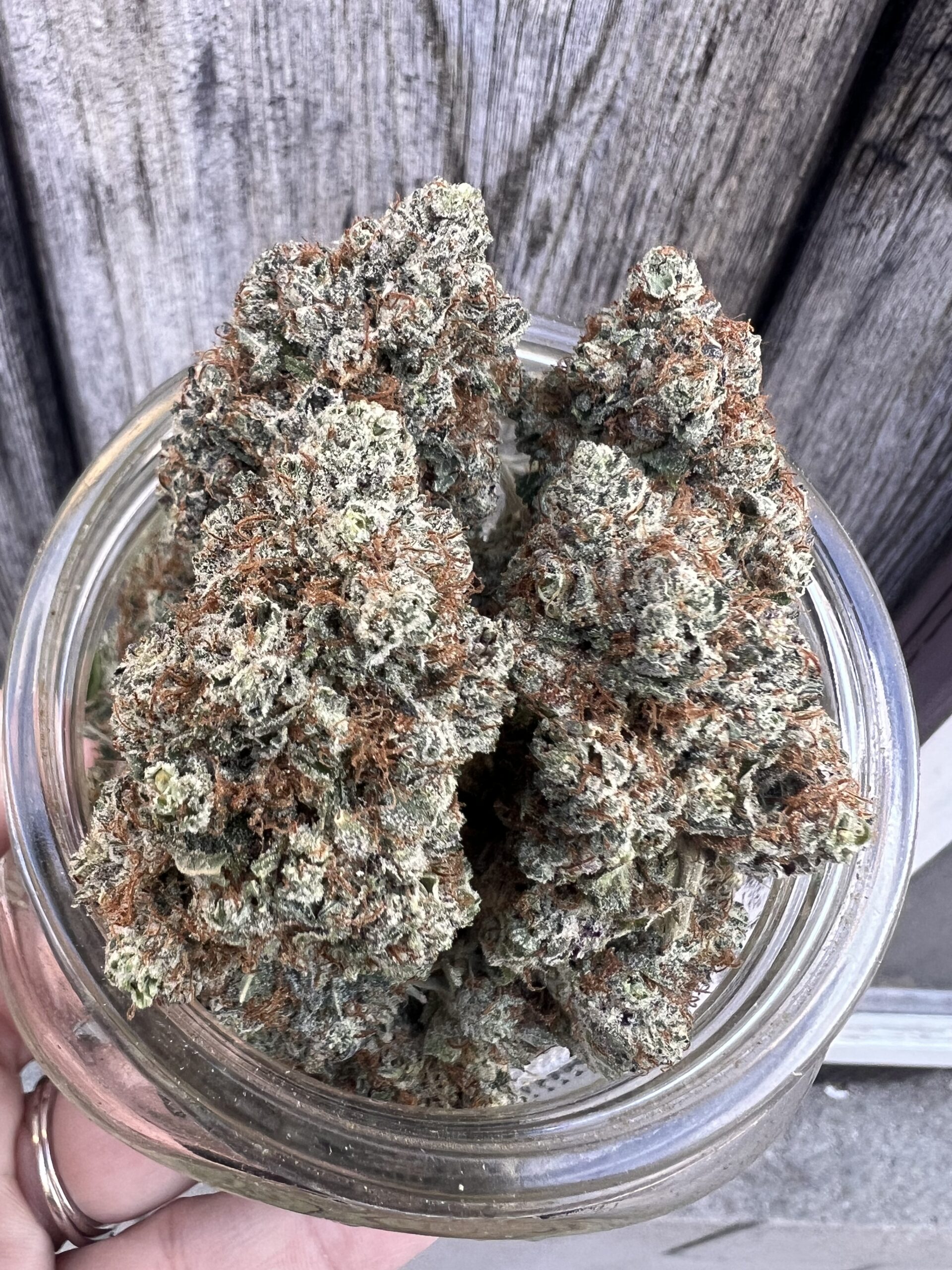 Permanent Marker is an indica dominant hybrid strain (70% indica/30% sativa) created through crossing the delicious Biscotti X Jealousy X Sherbet BX strains. This three-way cross is the perfect daytime strain to help you kick back and relax on a lazy afternoon without a care in the world. The high settles in after a few tokes, filling your mind with a sense of lifted creativity that has you feeling happy and artistically inspired. A slightly weighty sense of calm accompanies this blissful state, helping you to settle down and relax without causing too much sedation. A feeling of hunger finishes out the high, leaving you totally ravenous and ready to get snacking. Combined with its super high 34-35% average THC level, these effects make Permanent Marker a great choice for treating conditions such as chronic fatigue, PMS or cramps, depression or mood swings and chronic stress or PTSD. This bud has a sweet and sour fruity candy flavor with a punch of citrusy diesel upon exhale. The aroma is of spicy diesel, pungent dank and super sour citrus. Permanent Marker buds have dense oversized spade-shaped bright emerald-green nugs with purple leaves, lots of thin orange hairs and tiny, amber-tinted white crystal trichomes.