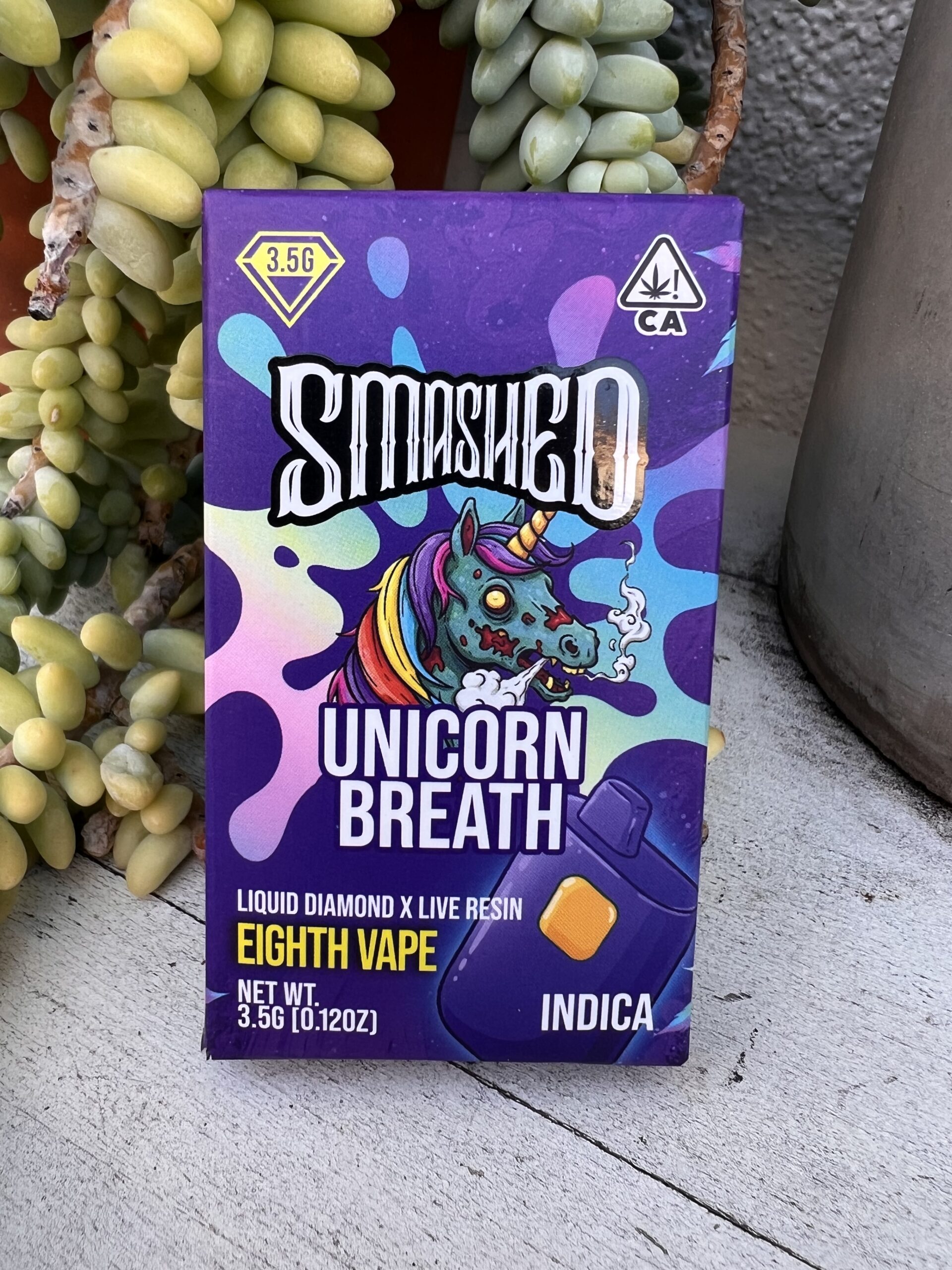 Smashed – Eighth Vape – Liquid Diamonds Live Resin – Unicorn Breath – Indica – 3.5G